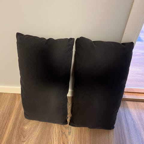 2stk sofaputer i mørkegrå stoff. 70kr for begge. 50x50cm.