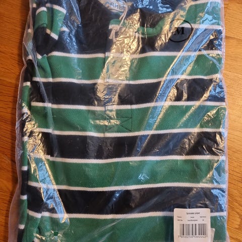 Stormberg pique for herre i størrelse L. Piqueskjortene har krage og kort knappestolpe. De er tofargede med mørk bunnfarge og horisontale striper i henholdsvis blått og oransje. Passer til hverdagsbruk og fritidsaktiviteter.