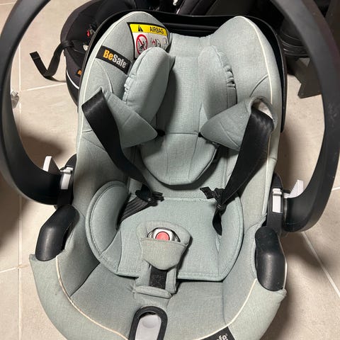 BeSafe babystol selges pent brukt. Kjøpt ny av oss i 2022 og brukt av ett barn i 2023. Vi har brukt med base (følger ikke med, men kan kjøpes separat). Kan også beltemonteres.