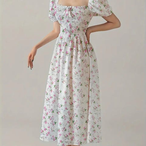 Utrolig vakker romantisk kjole i grønn og hvit og blonder