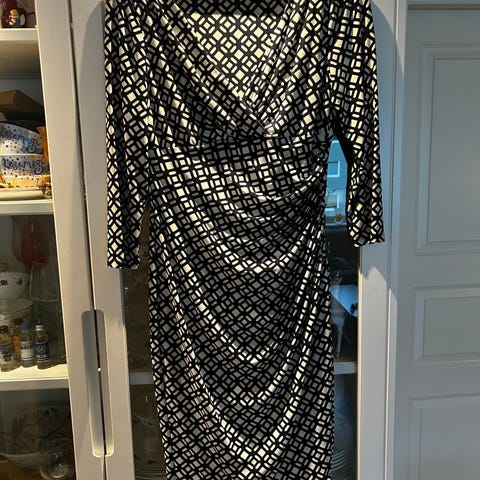 Denne kjolen fra Ralph Lauren sitter veldig godt på damer med former. Kjolen er tung, henger fint. Jeg liker den veldig godt, men sitter ikke så godt på meg. Den har blitt brukt på julebord og sommerfest.