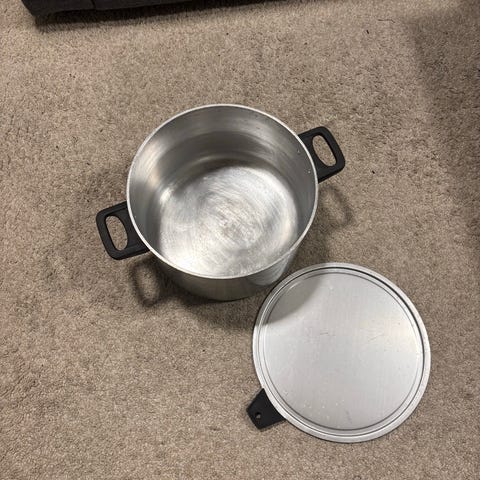 Lokk 2: merket 18 (diameter hele lokket er 19,7 cm, for kjeler med diameter 18 cm). Selges for 150.