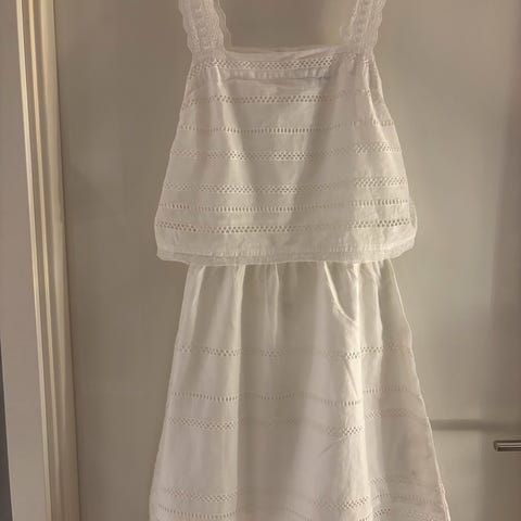 Søt bomullskjole i blonde uttrykk. Åpen rygg.