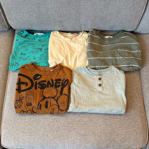 Klespakke Gutt POLOTRØYE T-skjorter Størrelse 110. Pent brukt av ett barn i en sesong. Hentes på Løren/Økern i Oslo eller sendes med Helthjem (betales av kjøper).