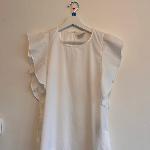 Super søt topp med volang på ermene. Søt utskjæring i ryggen med knapper. 100% bomull.