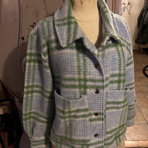 «ORANGE/BEIGE/GRØNN STRIPETET JAKKE», STR. 38/40