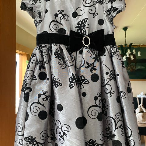 Søt kjole til jente str. 8 år (8-9år). Sort og hvit. Like fin til bursdag som til sommerkjole, 17.mai eller andre anledninger utover vår/sommer/høst.