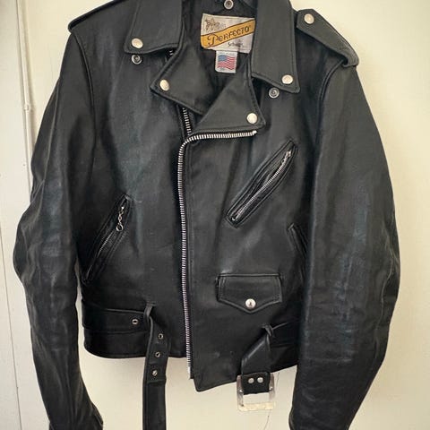 - Selger en veldig høy kvalitet jakke fra Schott, nesten ikke brukt