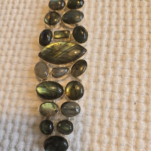 armbånd, perlearmbånd, smykke, håndlaget smykke, naturstein armbånd, steinarmbånd, glassperler, småperler, unikt smykke, vintage smykke, bohemsk stil, boho armbånd, flerfarget, blåtoner, grønn, naturlige materialer, pynt, tilbehør, dame, gaveidé