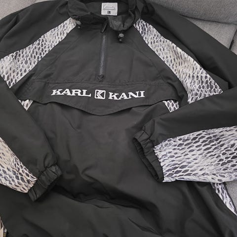 SikSilk jakke med mønster for herre i størrelse M. Jakken har et unikt design med blomstertrykk og er laget for utendørs bruk. Den er utstyrt med glidelås og har merkevarelogoen på kantene.