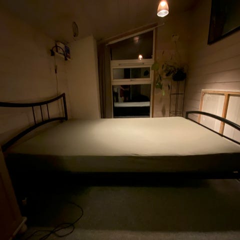 En ramme madrass med bein og overmadrass i tillegg selges en madrass i 90*200