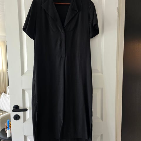 Kul kjole fra norske merke Tom Wood. Fine detaljer i halsen og armen som går litt ned på skuldrene. Høye splitter i begge sidene.