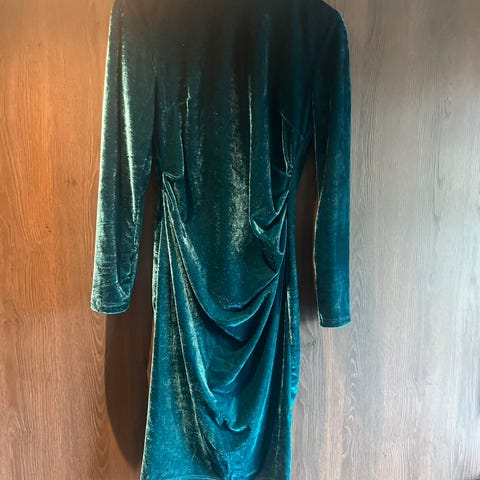 Herlig velourkjole / fløyelskjole i rødt med detaljer i striper.