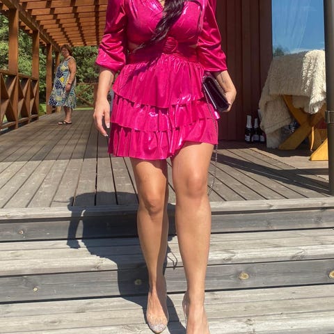 Selger favorittkjolen, da den er blitt for stor. Superfin rosafarge og deilig bomullsstoff! Belte i livet. 💕