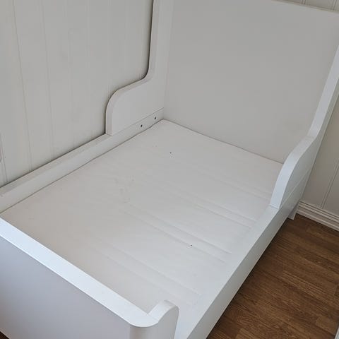 Uttrekkbar juniorseng m ribbebunn, hvit, 80x200 cm