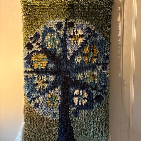Veggteppe i diamant sting 60-70 tallet ? Med 2 jern oppheng