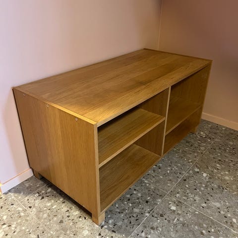 Solid TV-benk i fargen valnøtt selges. Har en del skjønnhetsfeil men dette er lite synlig med TV på benken.