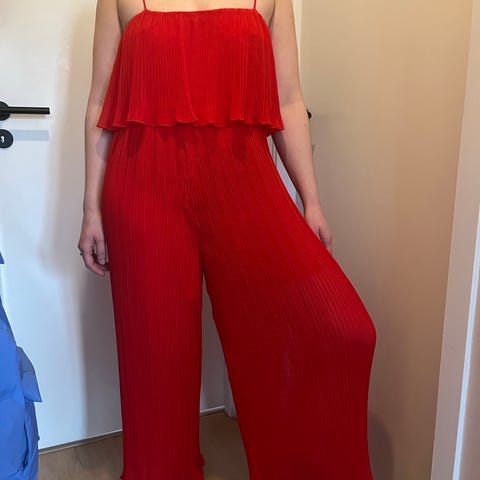 Jumpsuit som er lik bak som foran(minus rysjer bak). Lett is stoffet