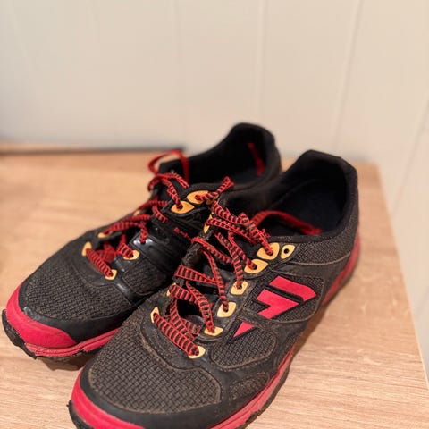 Terreng sko med godt grep. Kjøpt feil str. Lite brukt, men stått i skapet en stund. Se bilde for knekk i ene siden. Ble solgt som str 40, men oppleves mer som en str 38. Innersåle måler til 26,5cm, se bilde.