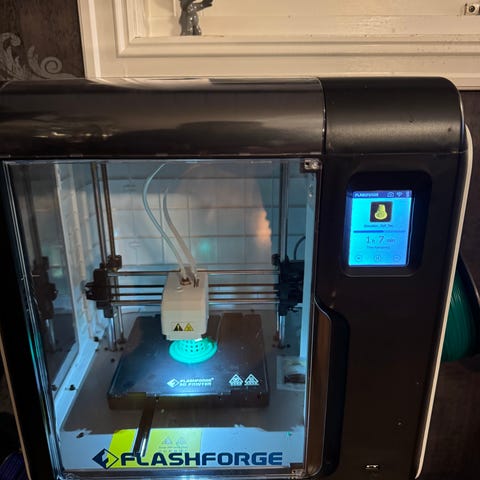 Flashforge creator pro selges billig. Blir for lite brukt. Har kun brukt en farge. Følger med resten av en blå filament.