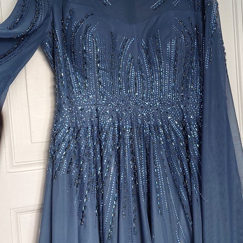 Brukt kun et par ganger, Kjolens lengde målt fra under skulder og ned er 125cm. Mål rundt bryst er 85.