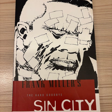 Selges pent brukt eksemplar av den ikoniske tegneserieromanen Sin City: The Hard Goodbye av Frank Miller. Dette er første bind i den mørke, stiliserte noir-serien som senere ble grunnlaget for den kjente filmen Sin City.
