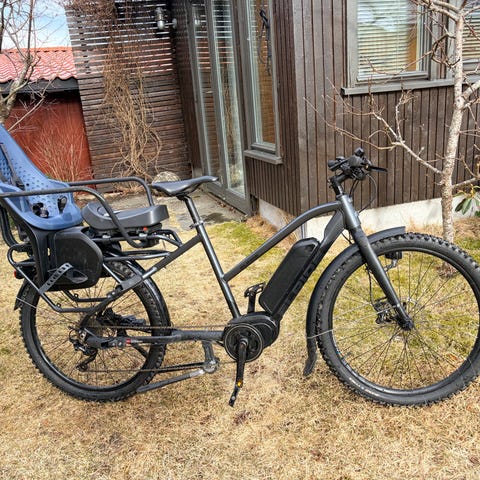 Sykkelen har beltedrift, batteri (500 Wh), to batteriholdere som gjør det mulig å montere ekstra batteri for lengre rekkevidde, kraftige hydrauliske skivebremser og Bosch Nyon skjerm (kr 4800) - dens lysstyrke og bakre lys justeres automatisk, samt kan brukes med sykkel-hansker.