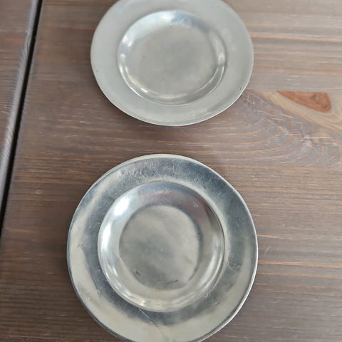 Flott askebeger i tinn fra Askvoll. Miniatyrkopi av fat fra ca. 1750. Mål bredde: 11 cm