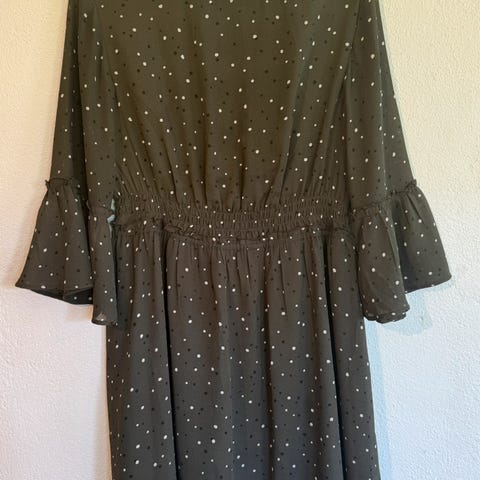 Grønn kjole med roser blomster. Fargen er nok mest riktig på bildet av ermet.