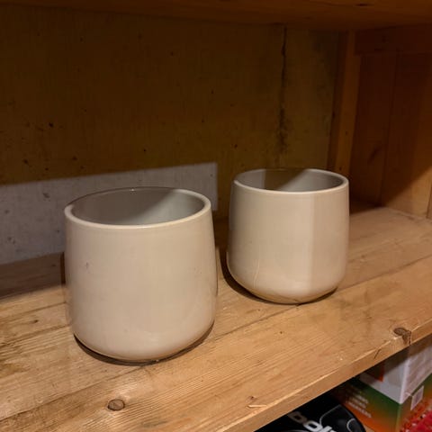 Potteskjuler i "betong". Diameter på ca 13 cm.