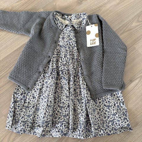 Nydelig romper fra Wheat med T-skjorte fra Name it og strømpebukse fra MP. Alt i størrelse 92. Det er en veldig svak flekk på t-skjorta, ikke prøvd å fjerne den. Romper og strømpebukse har ingen anmerkninger.