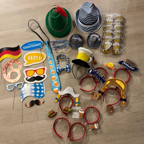 A mixture of used and unused party photo props used at wedding.