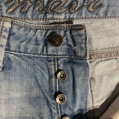 Kul 90-talls MAVI jeans størrelse 28/34. Model 136. Buksen er revnet ved ene lommen, men sydd sammen med forsterkning innvendig, også ved den andre lommen som forebygning. Totallengde 105cm. Skrittlengde 87cm. Midjemål (omkrets) 78cm.