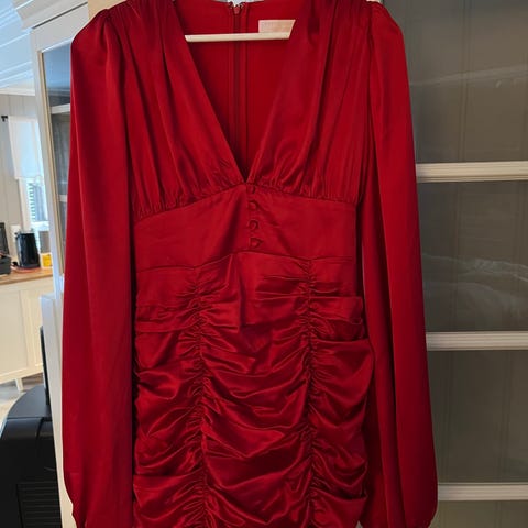 Kr 200. Kjole fra Missguided str 42. Aldri brukt, med lapp på. Silkeaktig stoff, laget i polyester.