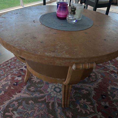 Retro heltre salongbord med en slags keramisk plate