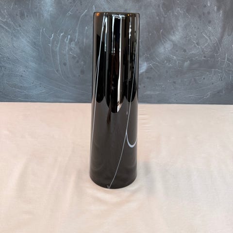 Fin, sort glassvase med slipt mønster