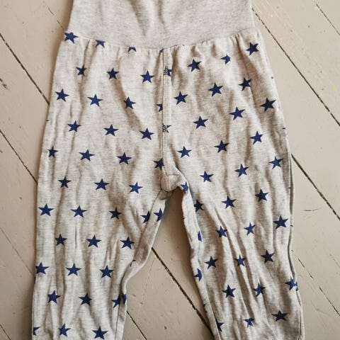 Pakke med barneklær i størrelse 44. Inkluderer flere plagg som bukser, luer og bodyer i ulike farger og mønstre. Materialene er myke og komfortable, egnet for nyfødte.