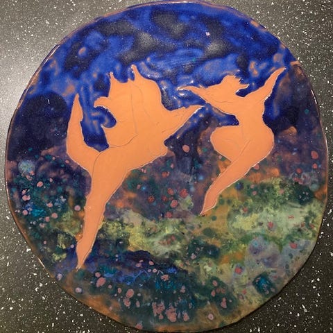 Det flotte fatet måler 30 cm. De to skålene/fatene måler 14 og 11 cm. Selges samlet.