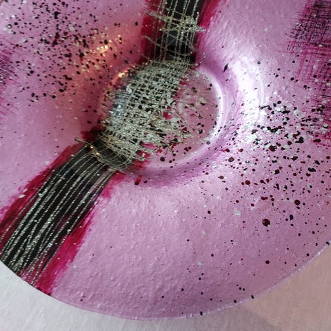Diameter 38 cm, Usikker på materiale. tror det er i hardplast.