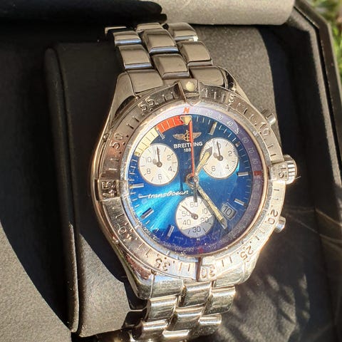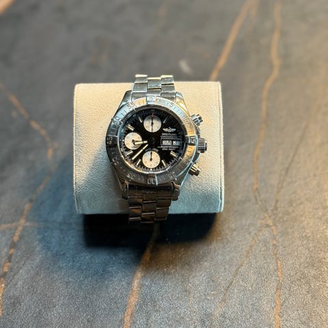 Breitling Chronograph-klokke, diameterstørrelse 39, har vært på verksted, noe vedlikeholdsarbeid, billig pris for seriøse kjøpere,