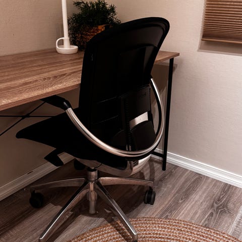Stolen er i god stand med mange gode år igjen. Den er komfortabel, ergonomisk og solid, egner seg godt til hjemmekontor eller arbeidsplass.
