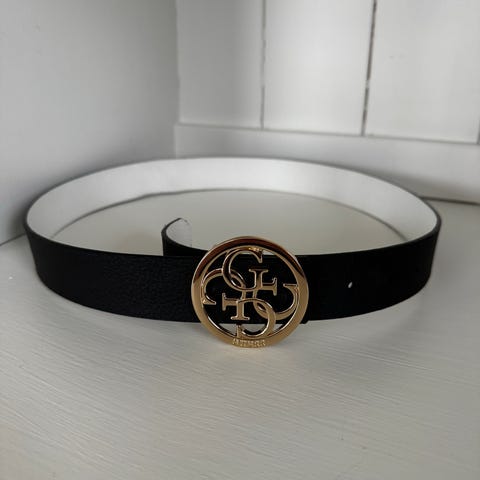 Elegant, svart skinn belt fra Guess, som kjøpt