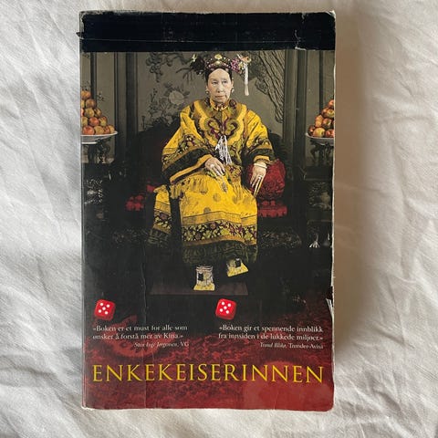 «Nært og varmt portrett av det moderne Kinas mor ... Som leser blir man dratt med i alle intriger og hverdagslig gjøren og laden i et liv totalt beskyttet mot innsyn for allmennheten. Forfatteren skriver så levende at vi føler at vi sitter sammen med enkekeiserinnen bak hennes silketeppe når hun gir sine ordrer til mannlige rådgivere som ikke får se henne ... Portrettet som tegnes av Cixi i denne boken er både nært og varmt. Et glimrende billedutvalg styrker vårt møte med et intelligent, ensomt menneske.» Terje Svabø, Aftenposten