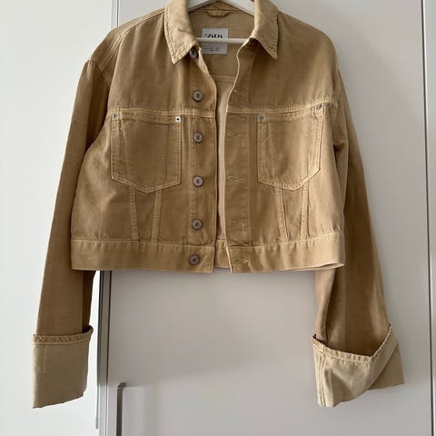 Selger min nesten ubrukte skinnjakke fra Mango. Ingen synlig bruksmerker, kun brukt et par ganger. Størrelsen er M, men jeg bruker vanligvis str XS, men ønsket den litt oversized.