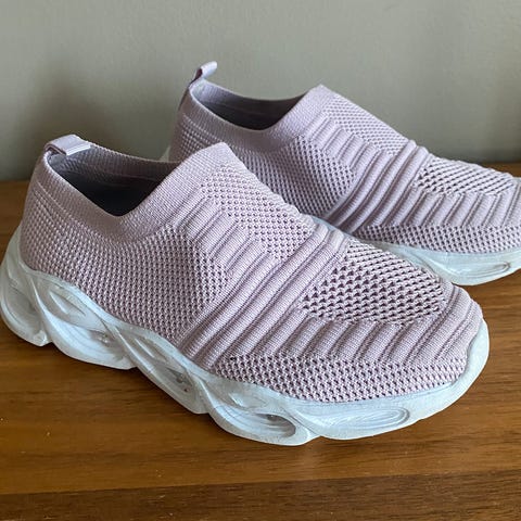Disse superkule ballerinaskoene er perfekte for sommeren! De er i en nydelig rosa farge og har et pustende, strikket design med utskjæringer som gir en lett og luftig følelse. Den barefot-lignende passformen gjør dem utrolig komfortable, ideelle for hverdagsbruk eller en avslappet spasertur. De er i størrelse 35."