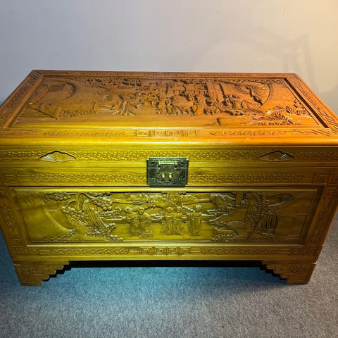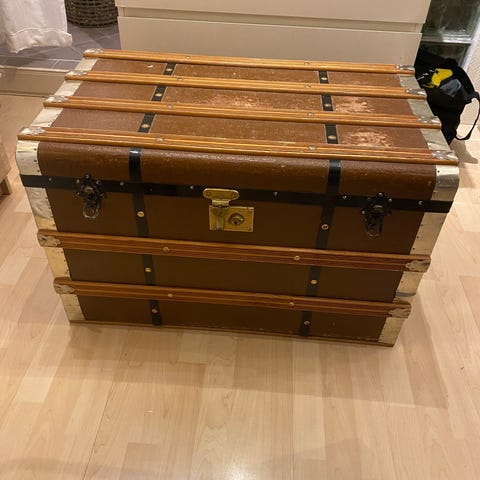 Veldig pen og foseggjort, mørkbeiset kiste fra midtøsten av ukjent treslag, mulig akasie?