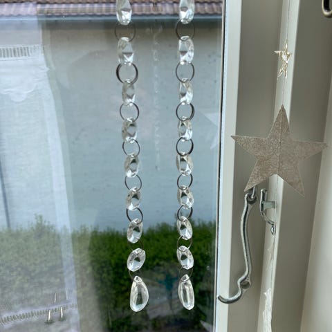 En slik remse som du ser på bildet, den har 3 stk. prismer selges til oppgitt pris! Jeg har flere av dem, oppgi hvor mange du ønsker😅 pris er pr. remse á 3 stk. krystaller -