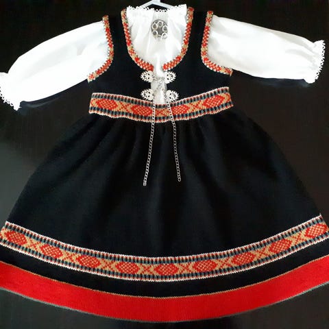 Pen festdrakt strl 128. Følger med bunadssskjorte. Brukt 2 ganger. Hel og pen.