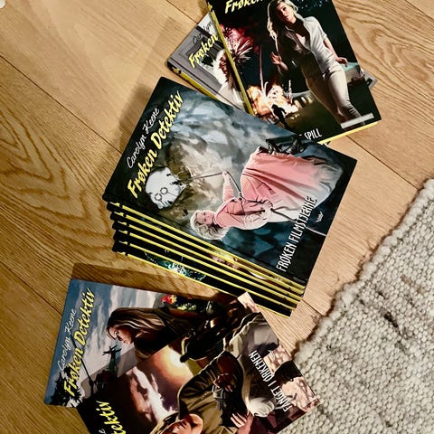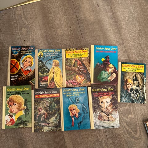 6 Frøken Detektivbøker: nr. 26, 36, 41, 45, 48, 49.