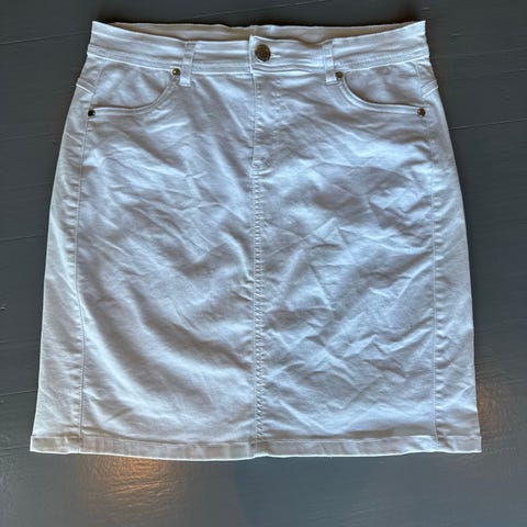 Tynnt seleskjørt med justerbare hengsler i stretch denim.